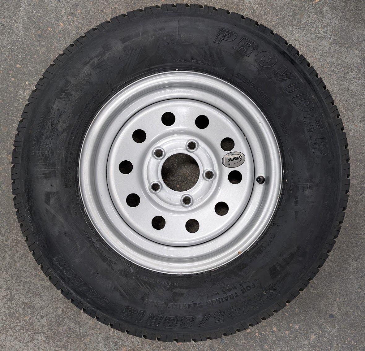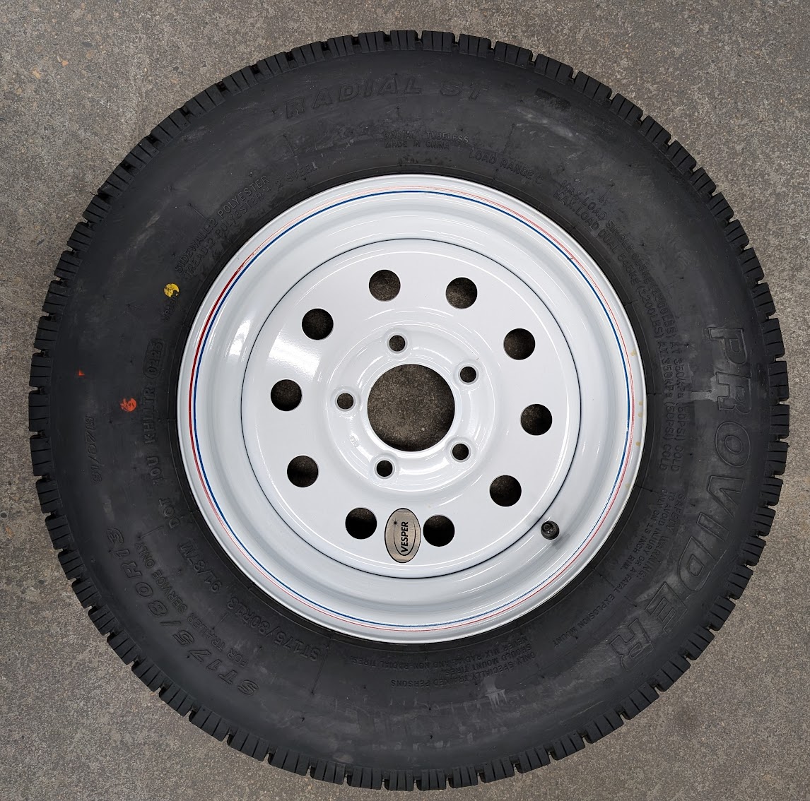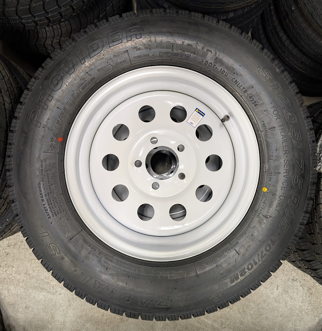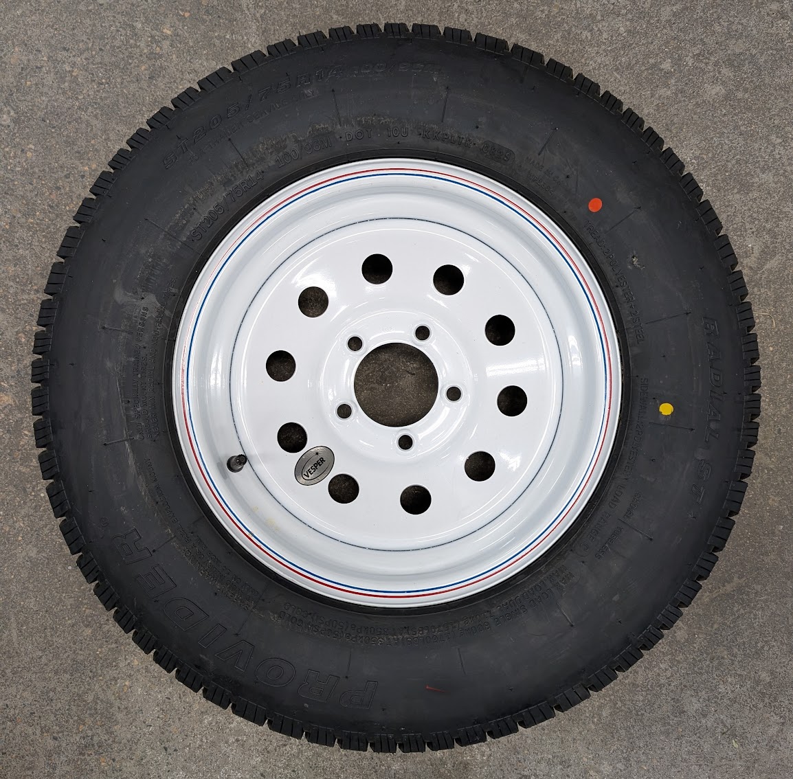 Providing the next step up in the thirteen inch tire line, these Provider tires with rims will keep your trailer moving. Great for Aluminum or steel utility trailers.