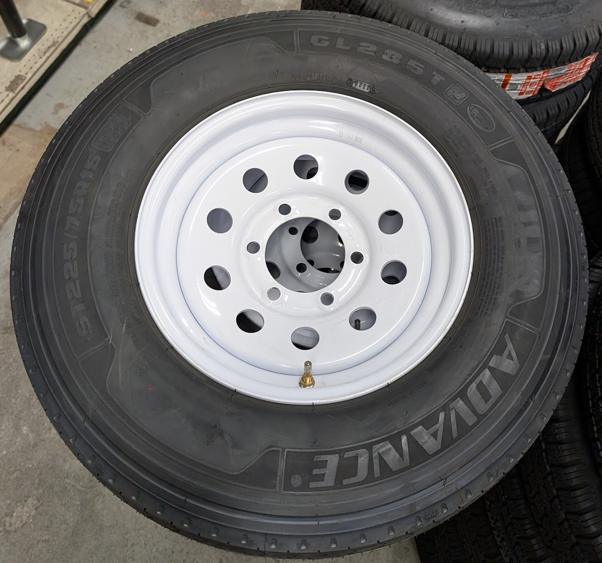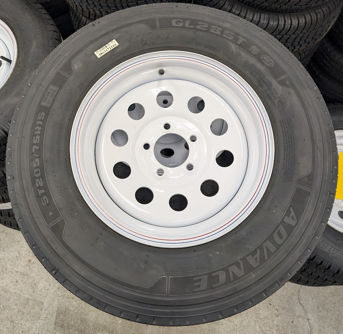 The newest addition to the 205/75R15 line up, the Advance 10ply rated all steel belted trailer tire. The tire and rim combination designed for each other, meaning the rim is strong enough to handle these tough 10ply rated tires.