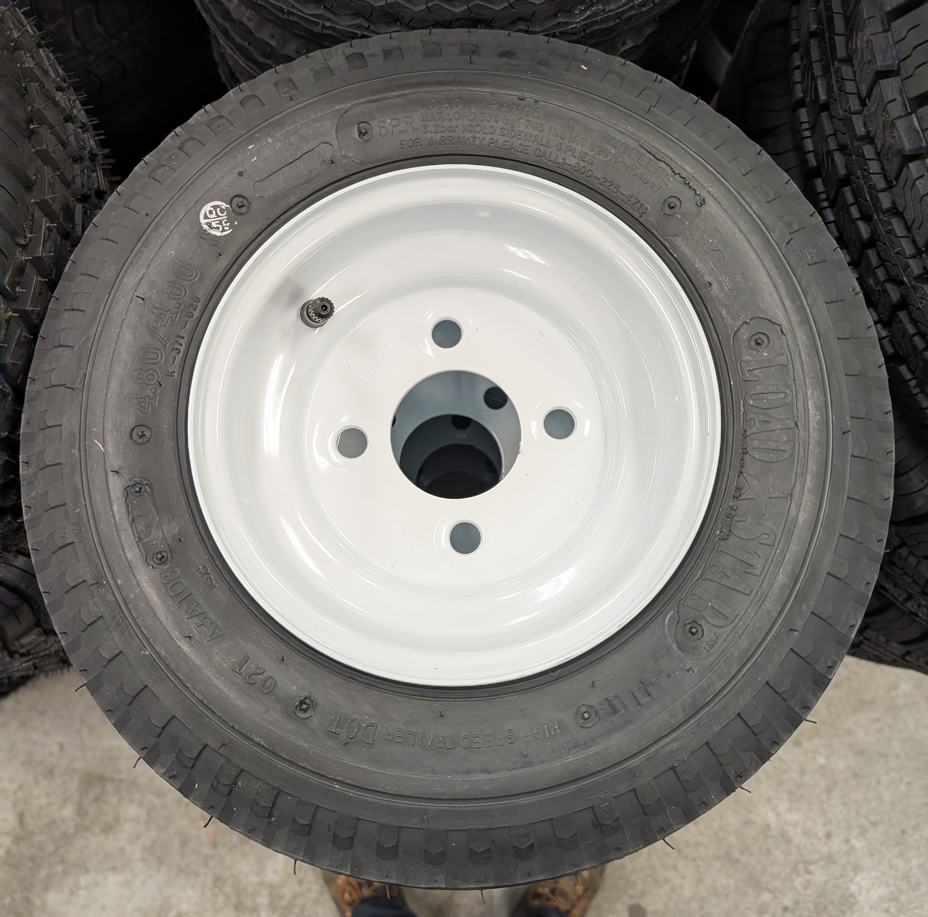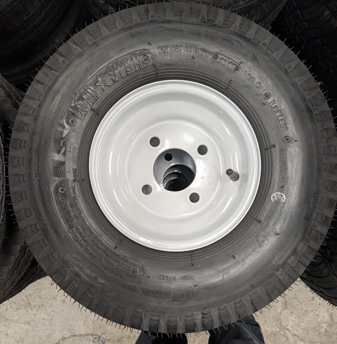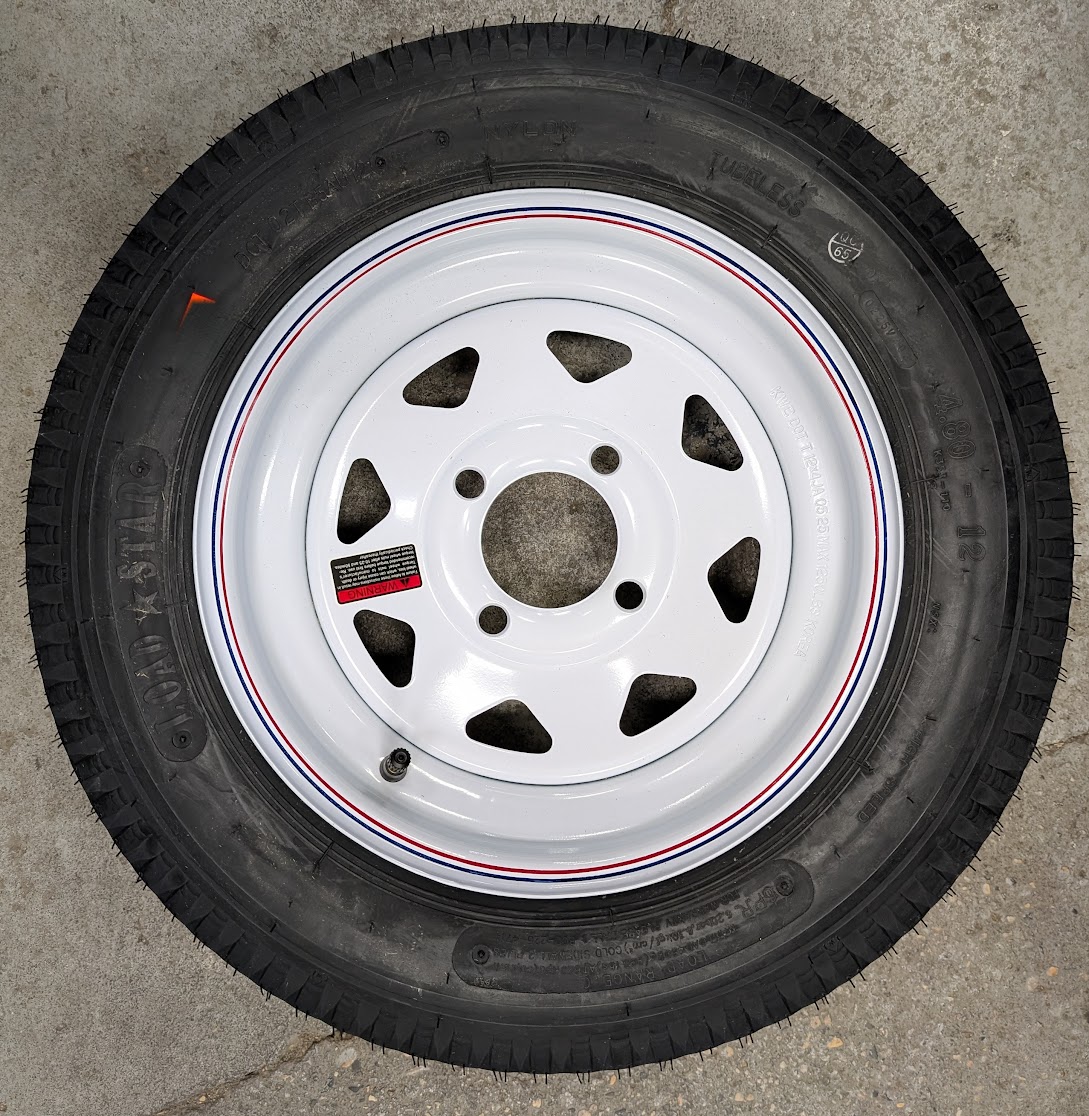 This rim and tire combo from Load Star is commonly found on smaller boat trailers or smaller utility trailers. Good little combo to get you going down the road.