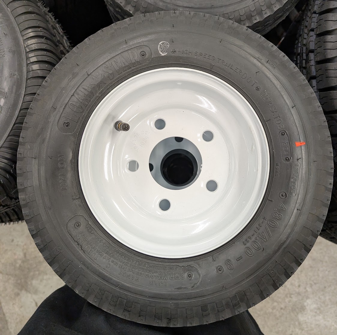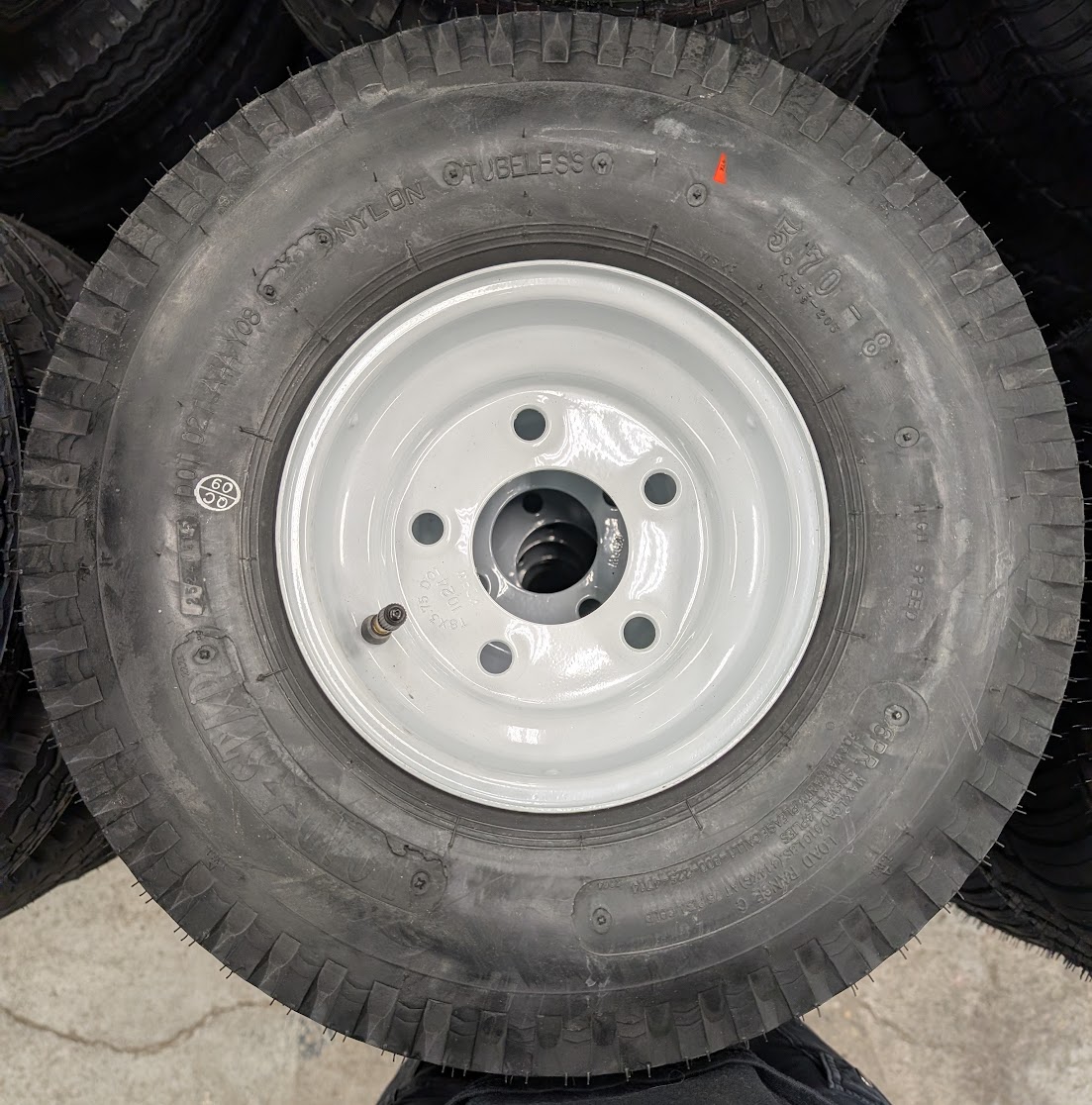 Awesome tire and rim combo found frequently on snowmobile trailers, utility trailers, pontoon trailers and many more. The ten ply rated stubby tire is an amazing addition to your long haul snowmobile or atv trailer and should keep you on the road for a long time.