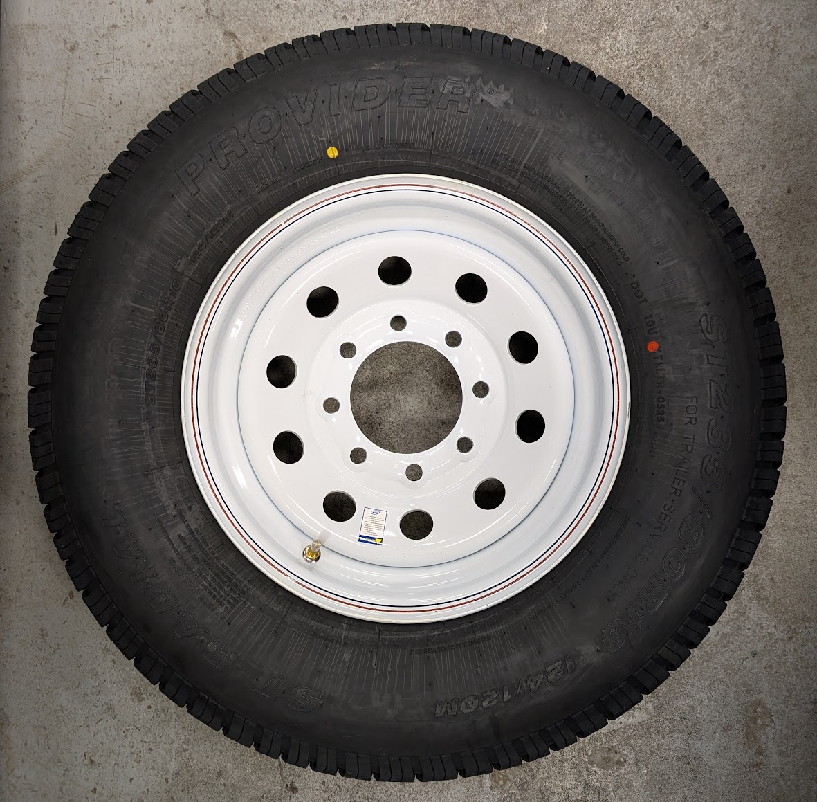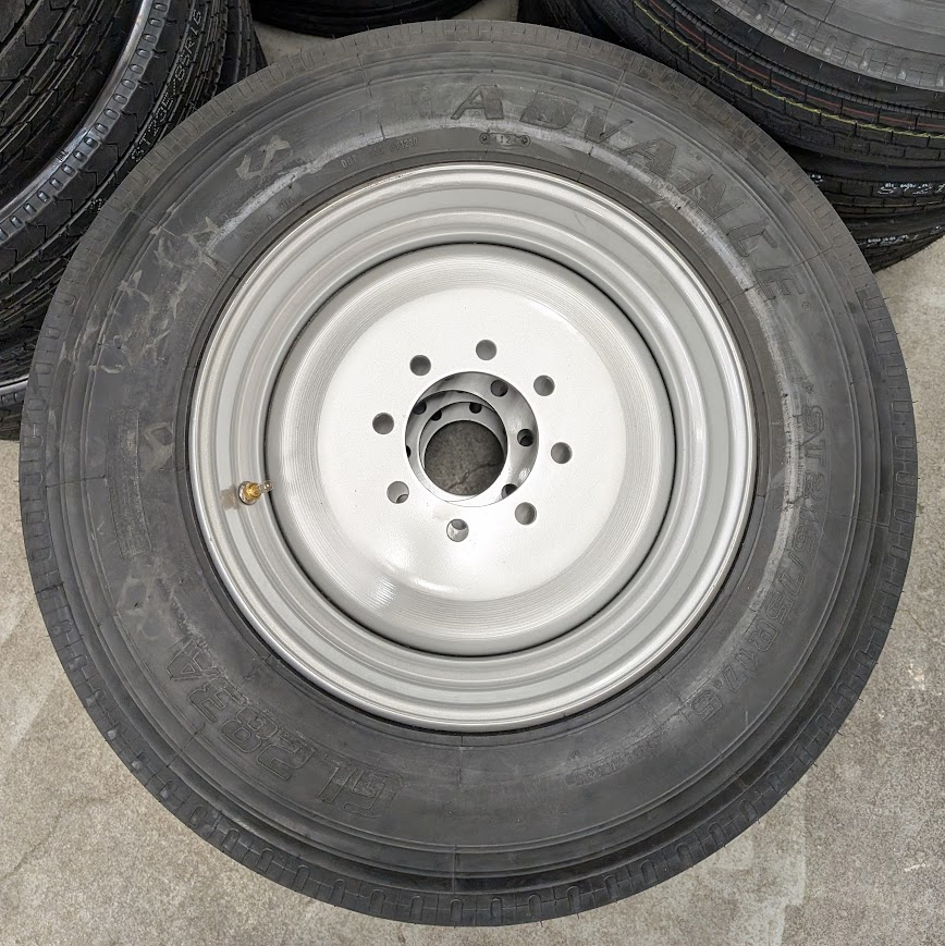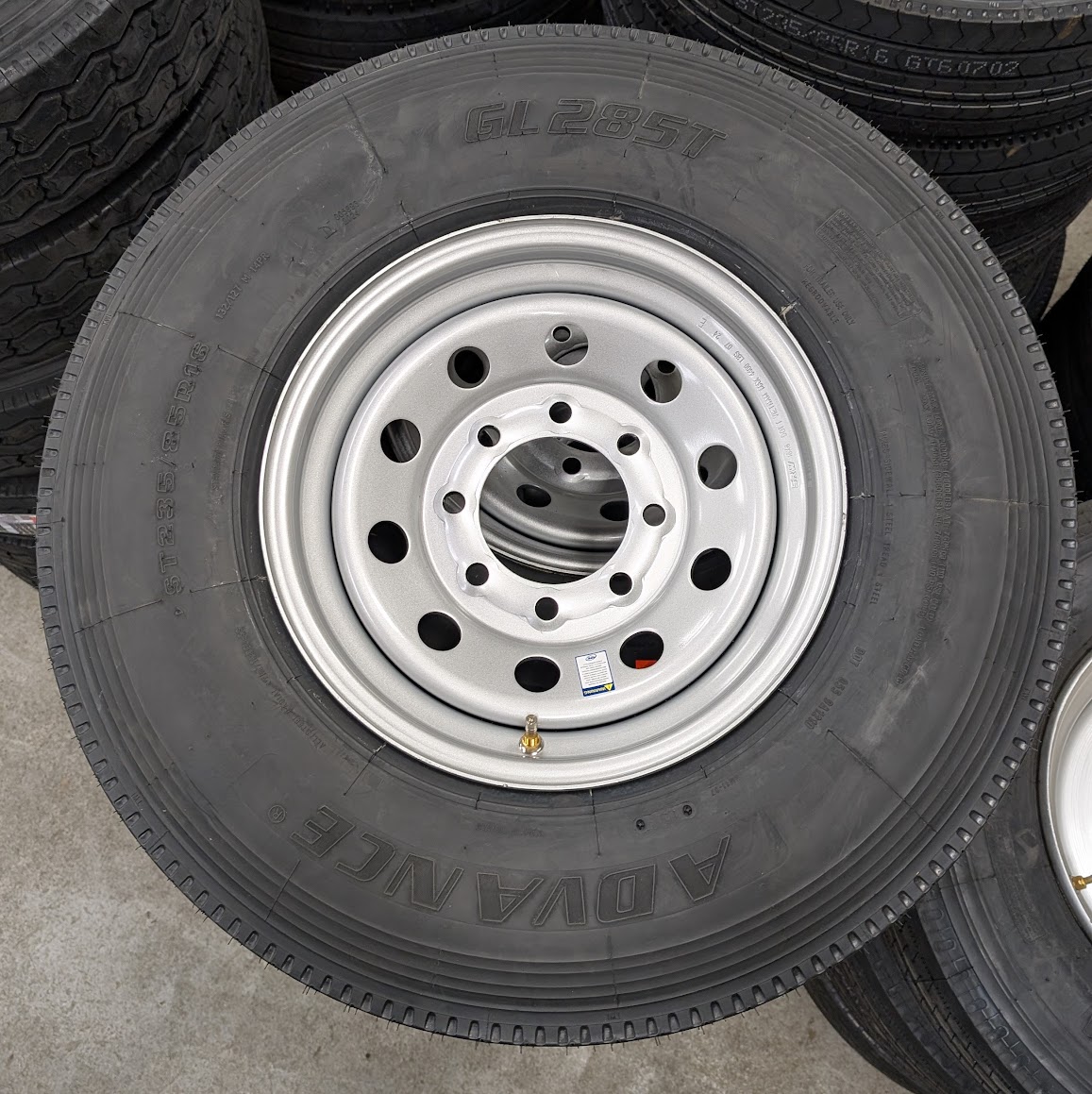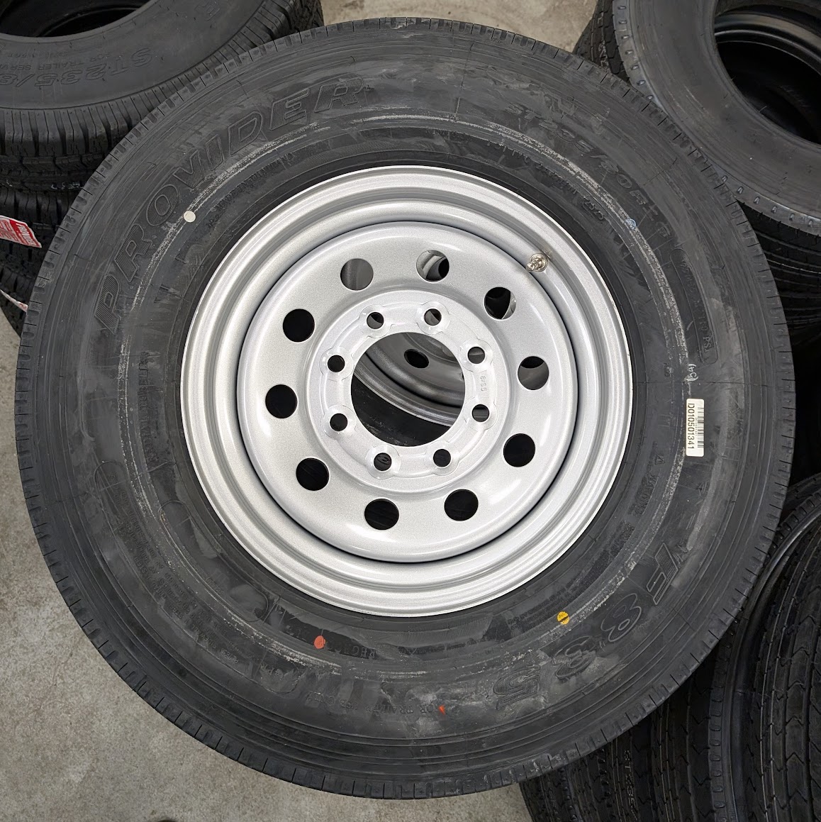 Ready and waiting for your car hauler, dump trailer or stock trailer these are some of the best tire and rim combos on the market. Make that stock trailer or toy hauler look amazing by adding some Aluminum rims with beefy 14ply tires already mounted and ready to go.